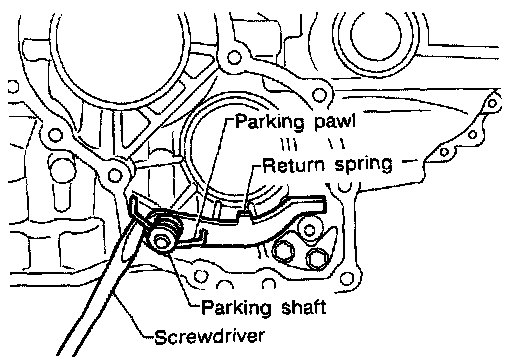 3. Install parking pawl on transmission case and fix it with parking shaft.