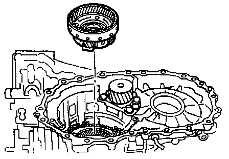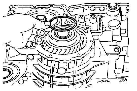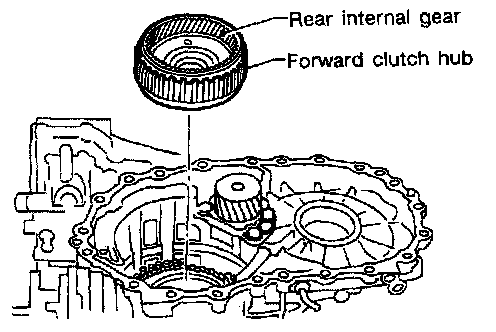 34. Remove rear internal gear and forward clutch hub from transmission case.