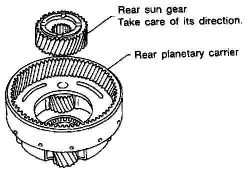 d. Check rear planetary carrier, rear sun gear and needle bearings for damage or wear.