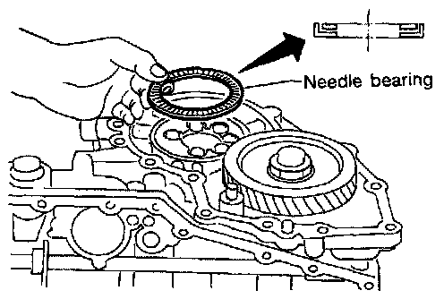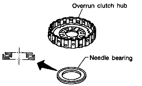 36. Remove needle bearing from overrun clutch hub and check for damage or wear.