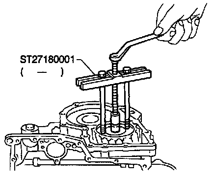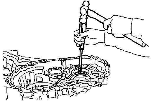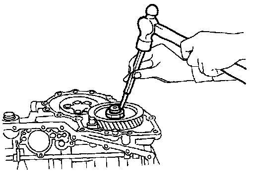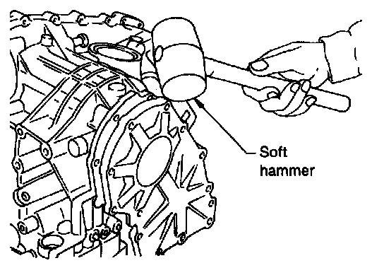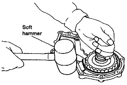 - If output shaft assembly was removed together with side cover, remove side cover by tapping it lightly with a soft hammer.
