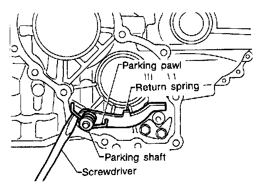 42. Draw out parking shaft and remove parking pawl from transmission case.