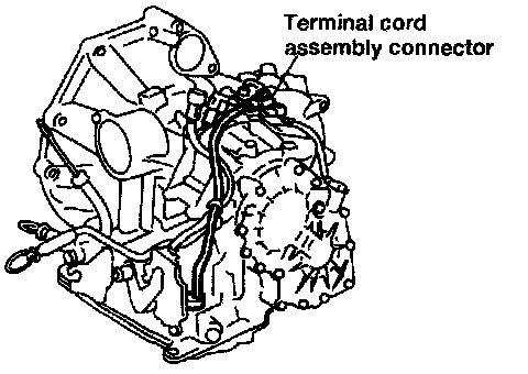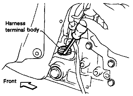 5. Remove terminal cord assembly harness from transmission case by pushing on terminal body.