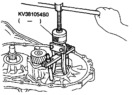 3. Remove differential side bearing outer race, and side bearing adjusting shim from transmission case.