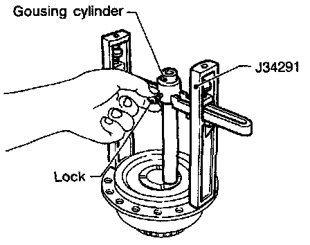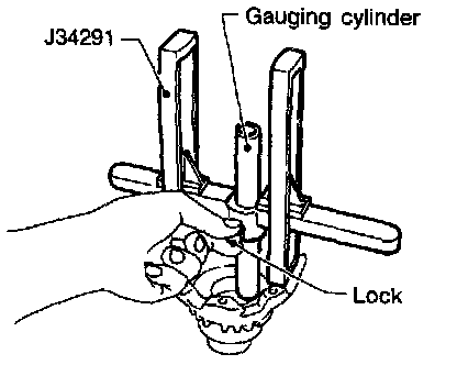 a. Set tool on the differential case and lock gauging cylinder in place with set screw.