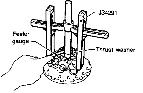 f. If not within specification adjust clearance by changing thickness of side gear thrust washer.