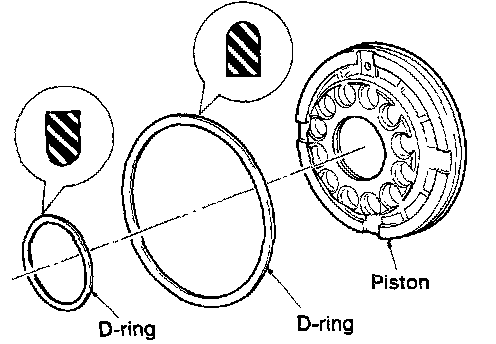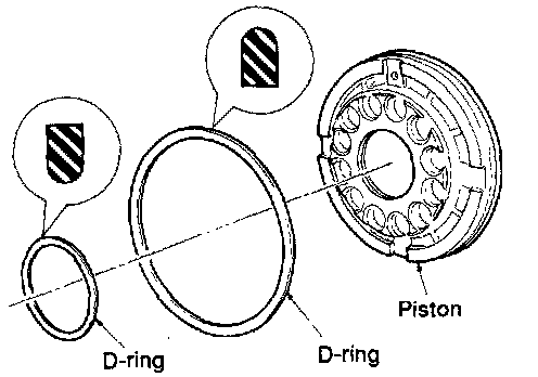 c. If retaining plate does not move to snap ring, D-rings may be damaged or fluid may be leaking at piston check ball.