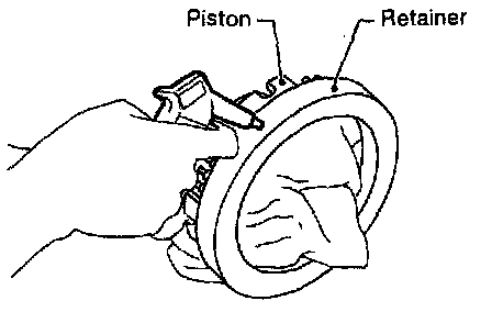 4. In order to remove piston, apply compressed air to oil hole of retainer while holding piston.