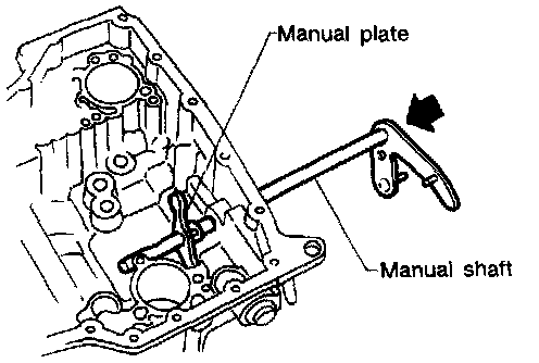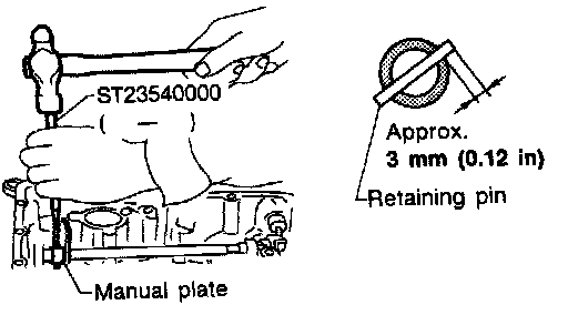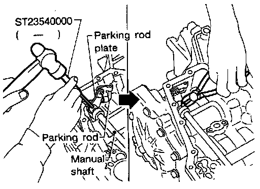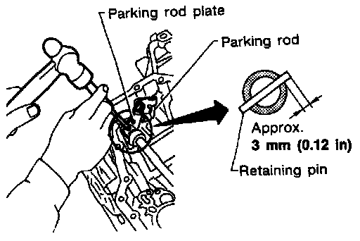 6. Set parking rod assembly onto manual shaft and drive retaining pin.