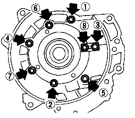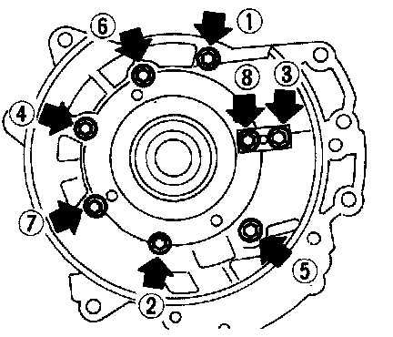2. Loosen bolts in a crisscross pattern and remove oil pump cover.