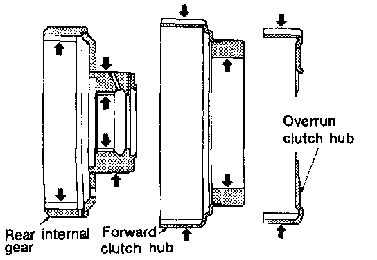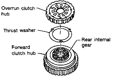 1. Remove overrun clutch hub and thrust washer from forward clutch hub.