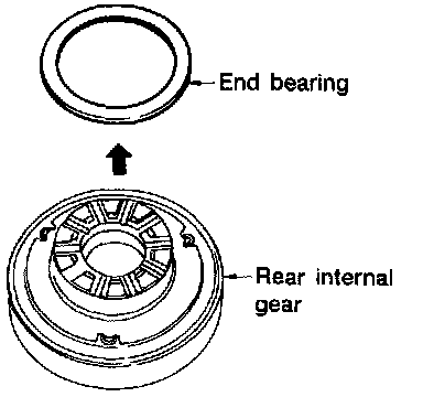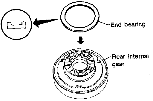 - Align projections of rear internal gear with holes of overrun clutch hub.