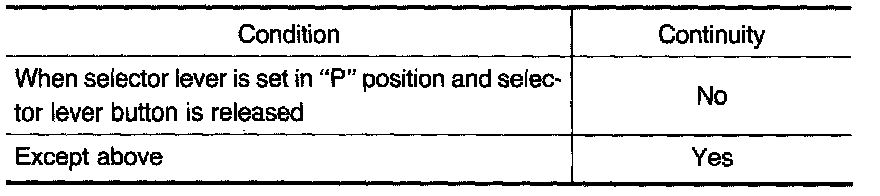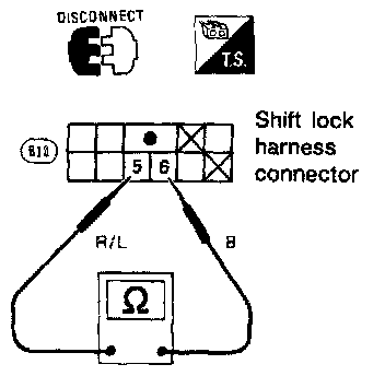 Check continuity between terminals (5) and (6) of shift lock harness connector.