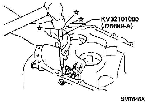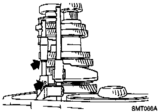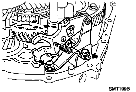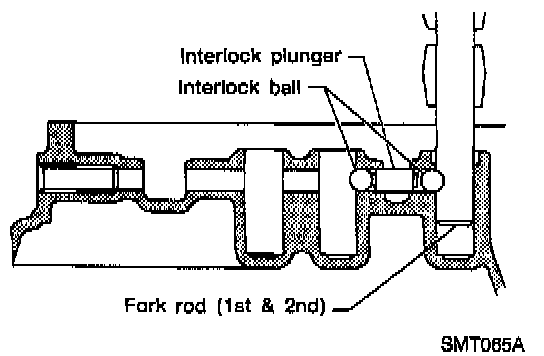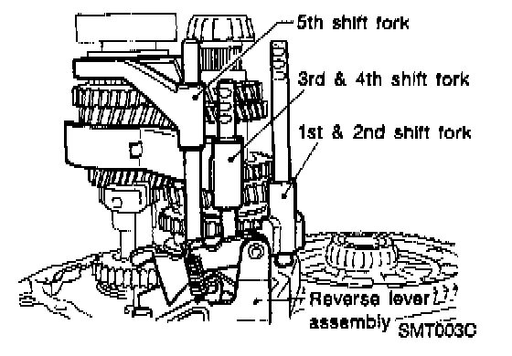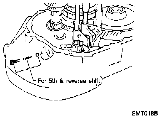 9. Install 5th shift fork and bracket, then install shift rod, stopper ring and retaining pin.