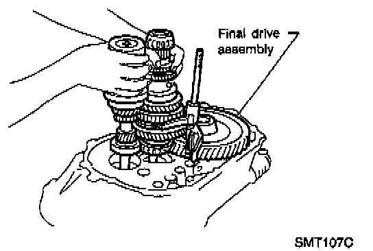 18. If bearing preload was adjusted, install selected shim(s) into transmission case.