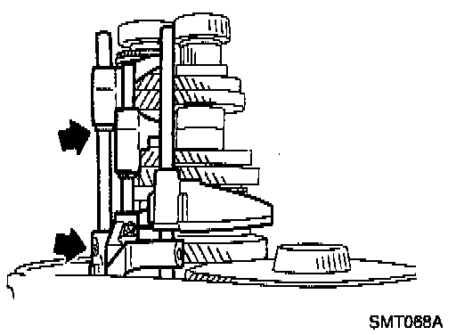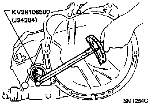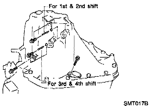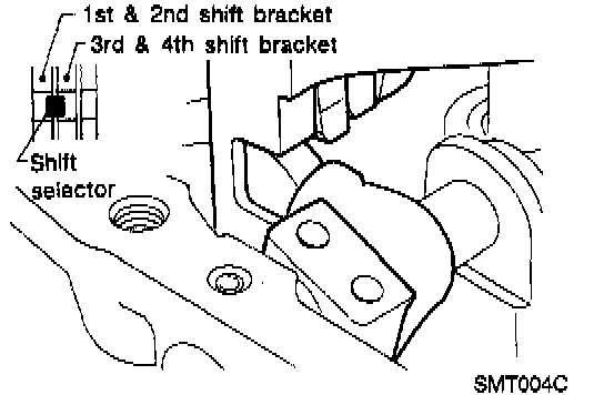Note: To aid in installation of transmission case, place shift selector in the 1st & 2nd shift bracket or between 1St & 2nd bracket and 3rd & 4th bracket.
