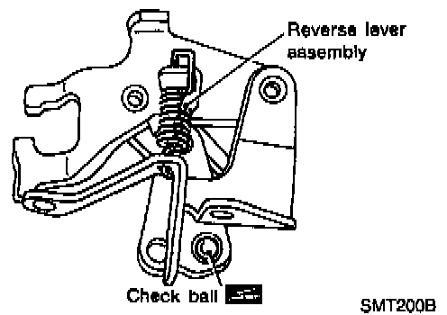 Note: Apply multi-purpose grease to check ball. Pay attention to direction of reverse lever spring.