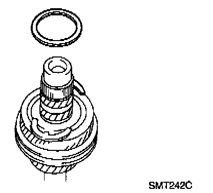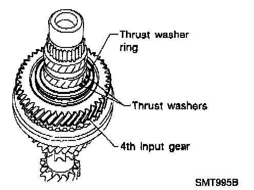 4. Remove thrust washer ring, thrust washers and 4th input gear.