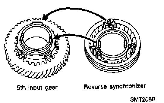 Note: Mesh recesses of 5th input gear with projections of reverse synchronizer cone.