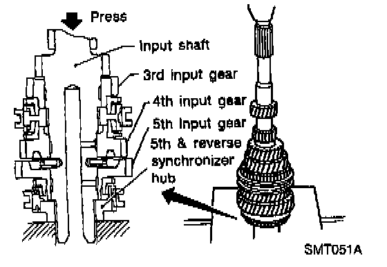 3. Remove 5th & reverse synchronizer and 5th input gear.