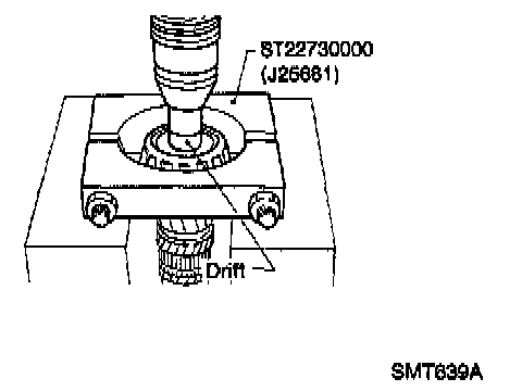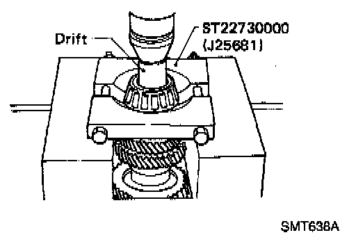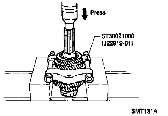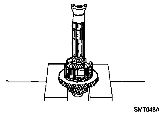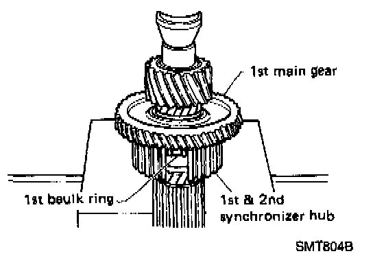 1. Press on 1st main gear, 1st baulk ring and 1st & 2nd synchronizer hub.