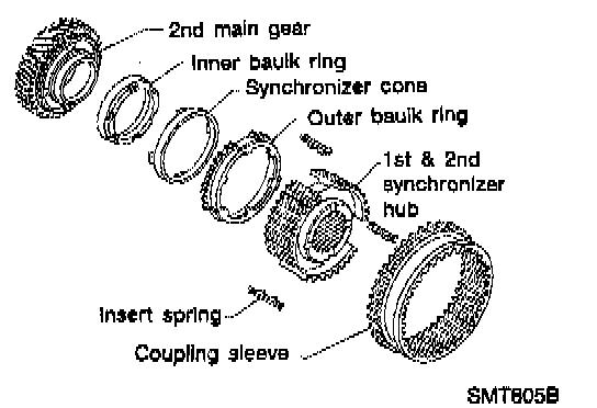 Note: Pay attention to direction of 1st & 2nd synchronizer hub.
