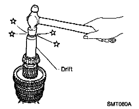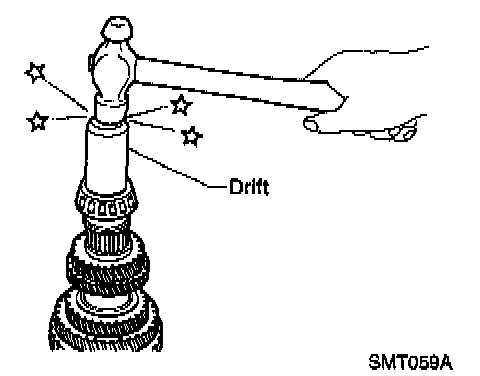 8. Select proper snap ring of 5th main gear to minimize clearance of groove and then install it.