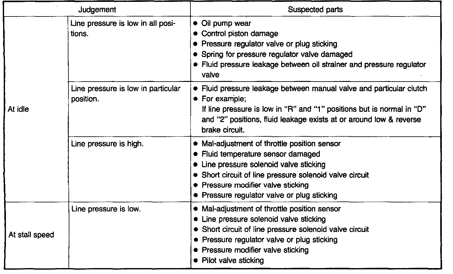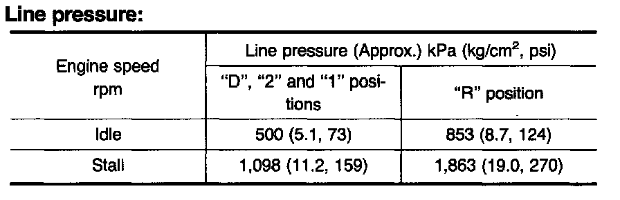 - When measuring line pressure at stall speed, follow the stall test procedure.