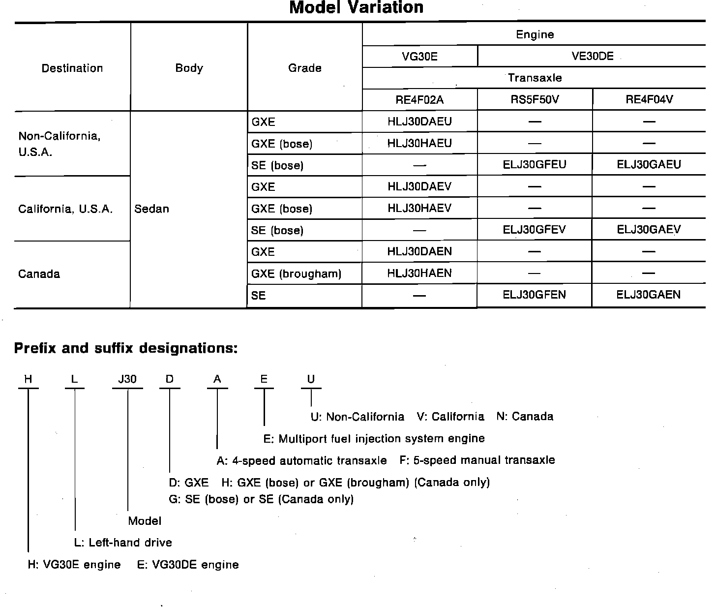 Maxima V6-2960cc 3.0L DOHC (VE30DE)