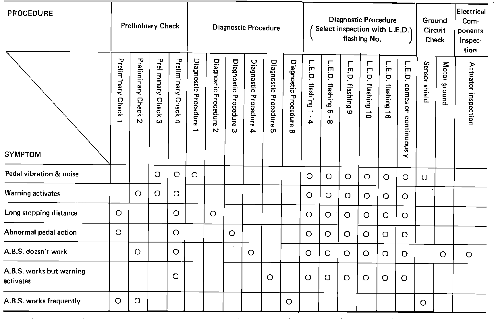 Fig. 3 Four Wheel ABS System Troubleshooting Chart.: