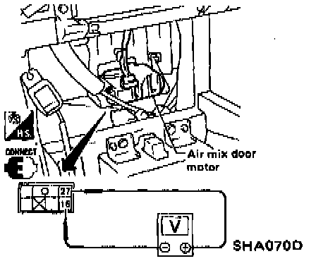 Measure voltage between terminals 27 and 16 at vehicle harness side and measure resistance according to the graph.