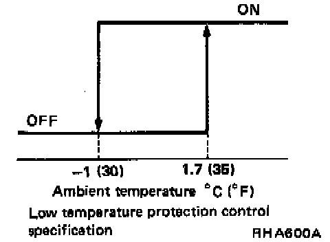 The auto amplifier will signal the ECCS to turn the compressor "ON" or "OFF" based on the signal supplied to the auto amplifier by the ambient temperature sensor.