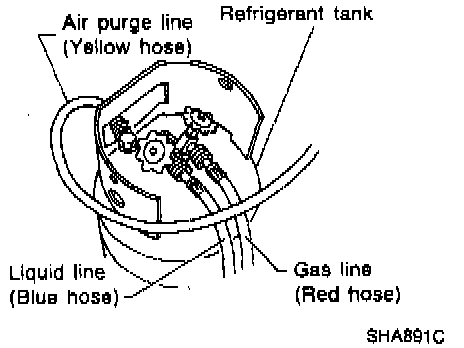 2. Open both valves of manifold gauge set. Make certain refrigerant tank "Gas" and "Liquid" valves are open.