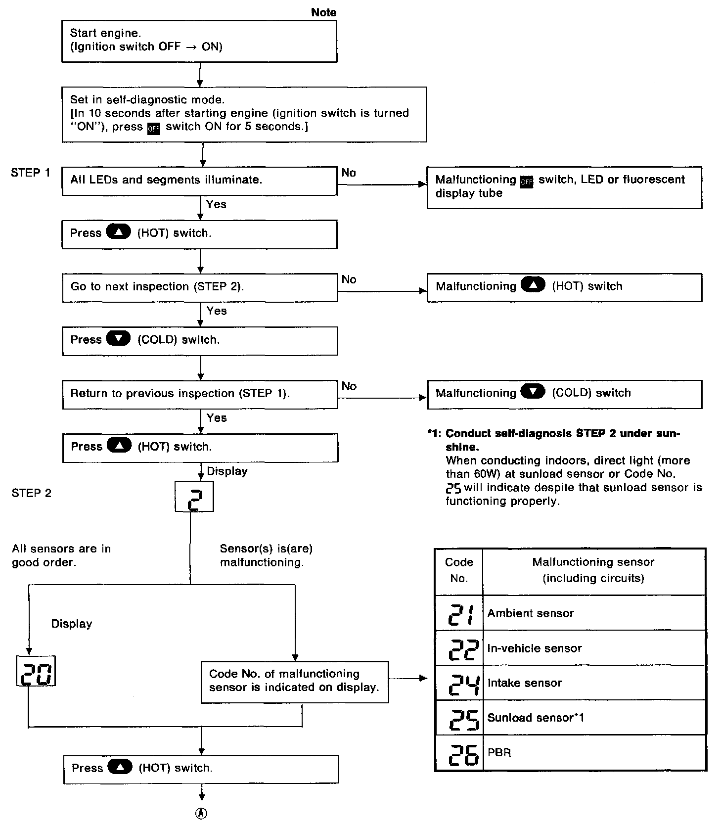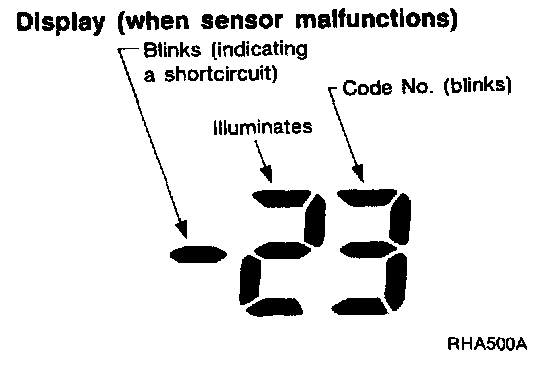- If a sensor is malfunctioning, the corresponding code No. blinks on display. A short circuit is identified by a blinking "-" mark preceding mode number.