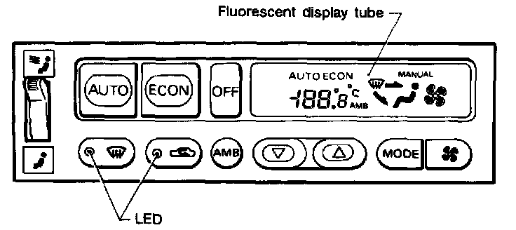 - When (DEF) switch is pressed second time, display shows temperature detected by in-vehicle sensor.