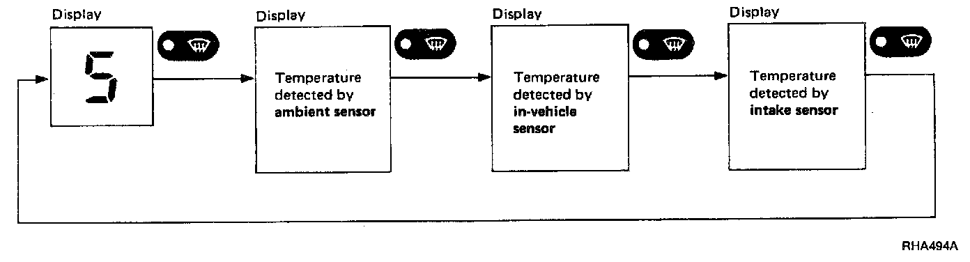 - When (DEF) switch is pressed third time, display shows temperature detected by intake sensor.