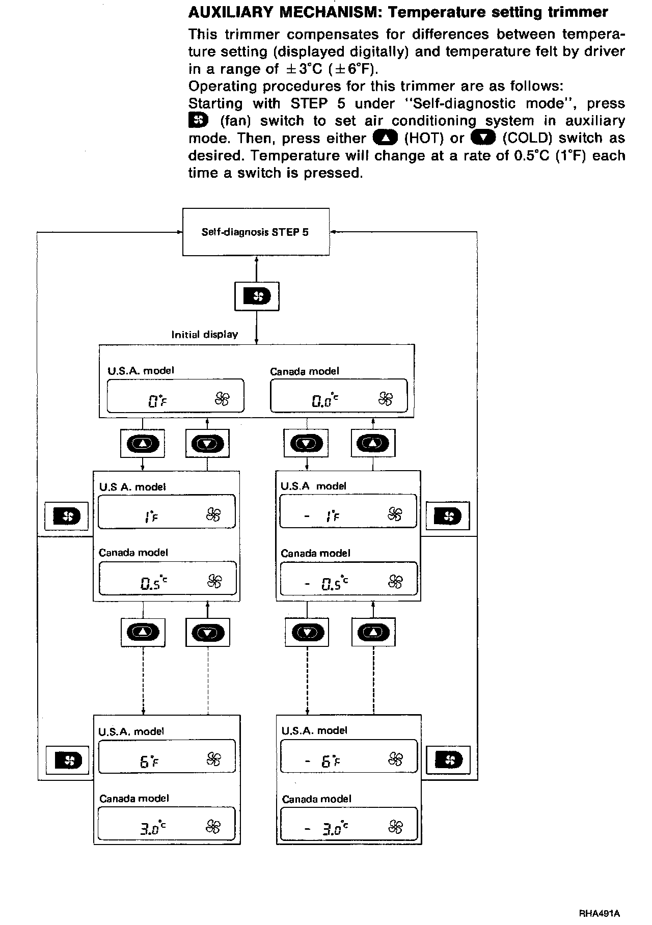 When battery cable is disconnected, trimmer operation is canceled and temperature set becomes that of initial condition, i.e. 0°C (0°F)