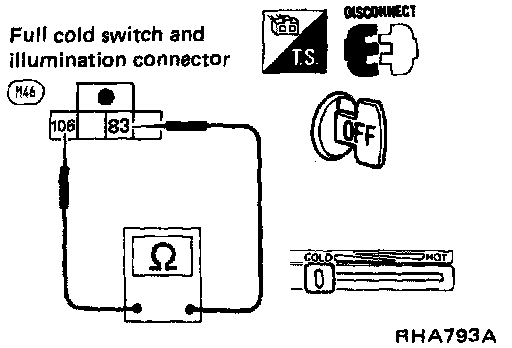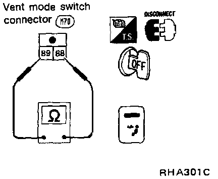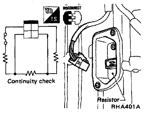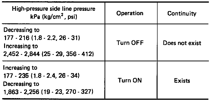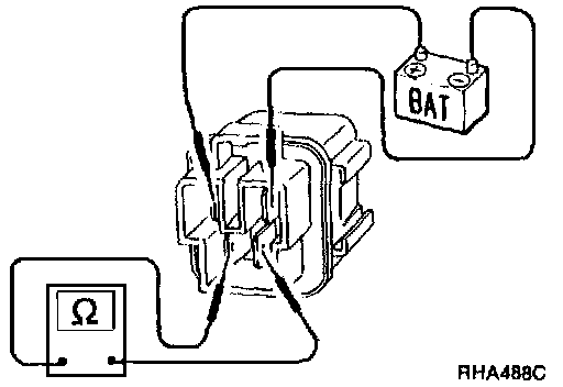 Check circuit continuity between terminals by supplying 12 volts to coil side terminal of A/C relay (or Max. cold relay).