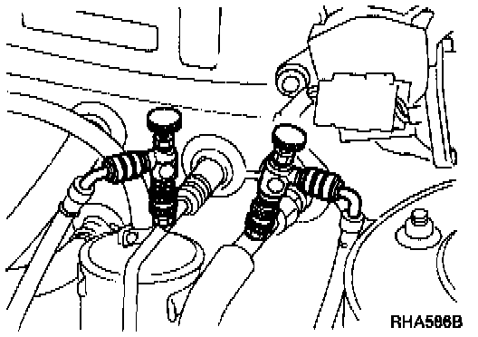 Install the adapter valve to each of the high pressure and low pressure service valves so that air purging from the charging hose can be omitted. This also ensures that refrigerant leakage upon disconnection of the hose can be prevented.