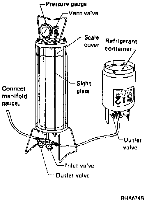 The charging cylinder is used to correctly measure the amount of refrigerant to be charged.