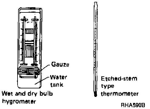 Use to check the air conditioner performance. An etched stem type thermometer may be used. A hygrometer must also be used because the air conditioner performance depends on the humidity.