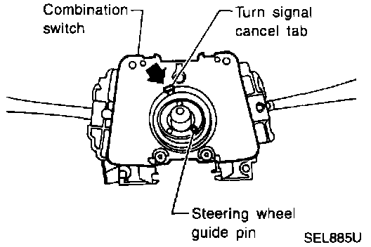 - Before installing the steering wheel, align the turn signal cancel tab with the notch of combination switch.