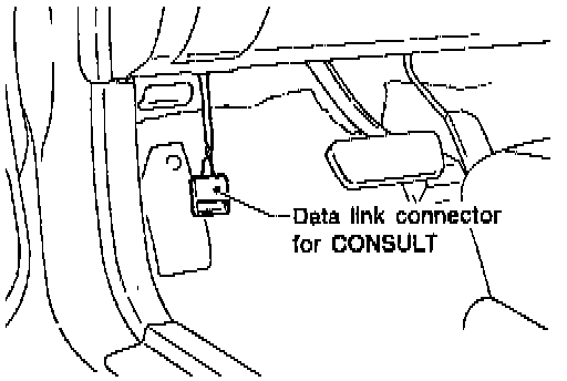The On-Board Diagnostics link connector for CONSULT is located behind the fuse box cover.