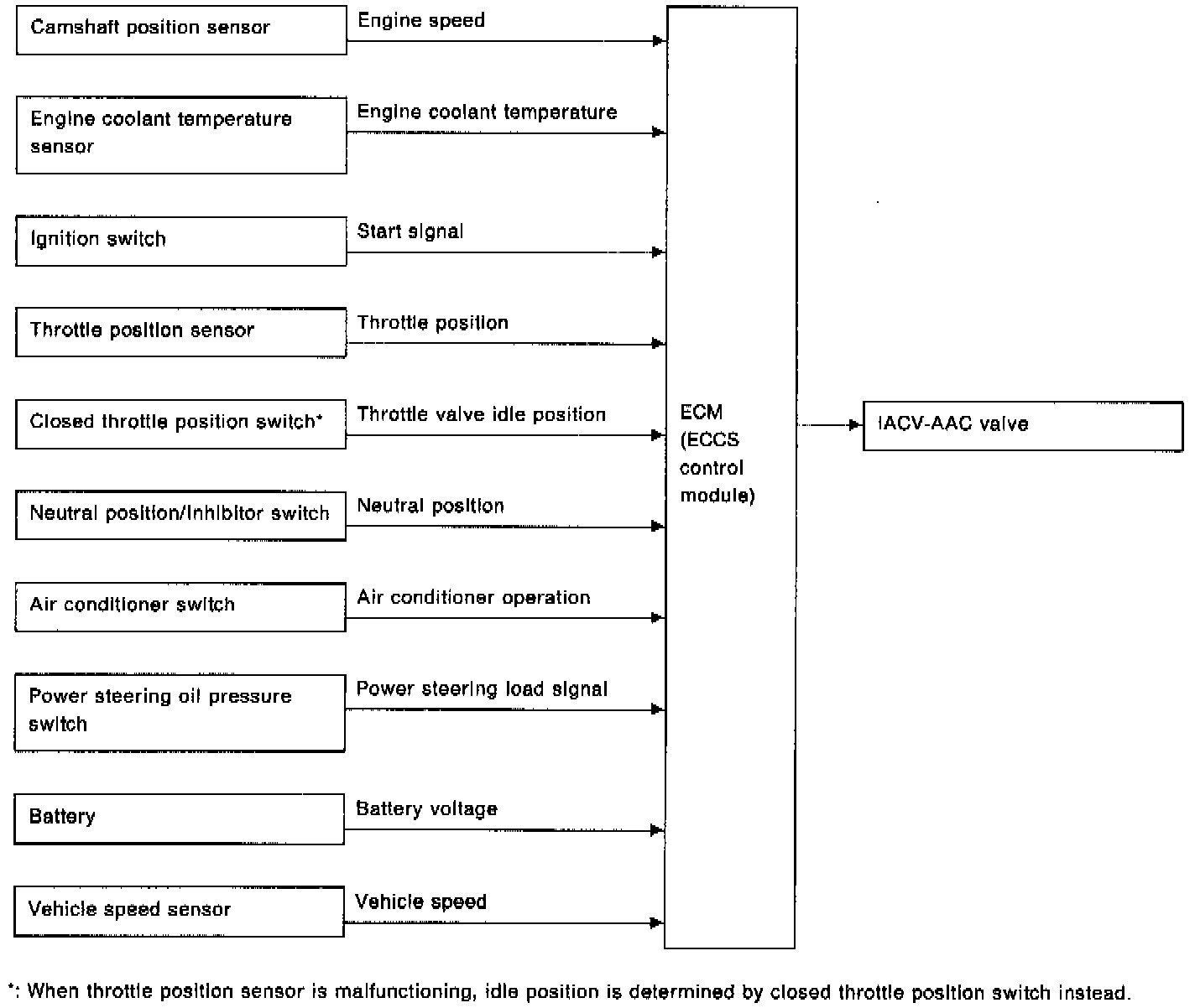 Three different devices, all part of the Idle Control System, are used to control engine idle. The devices are: