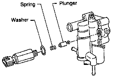 2. Remove the solenoid and check for sticking plunger or broken spring. Replace the solenoid if it fails the above test.