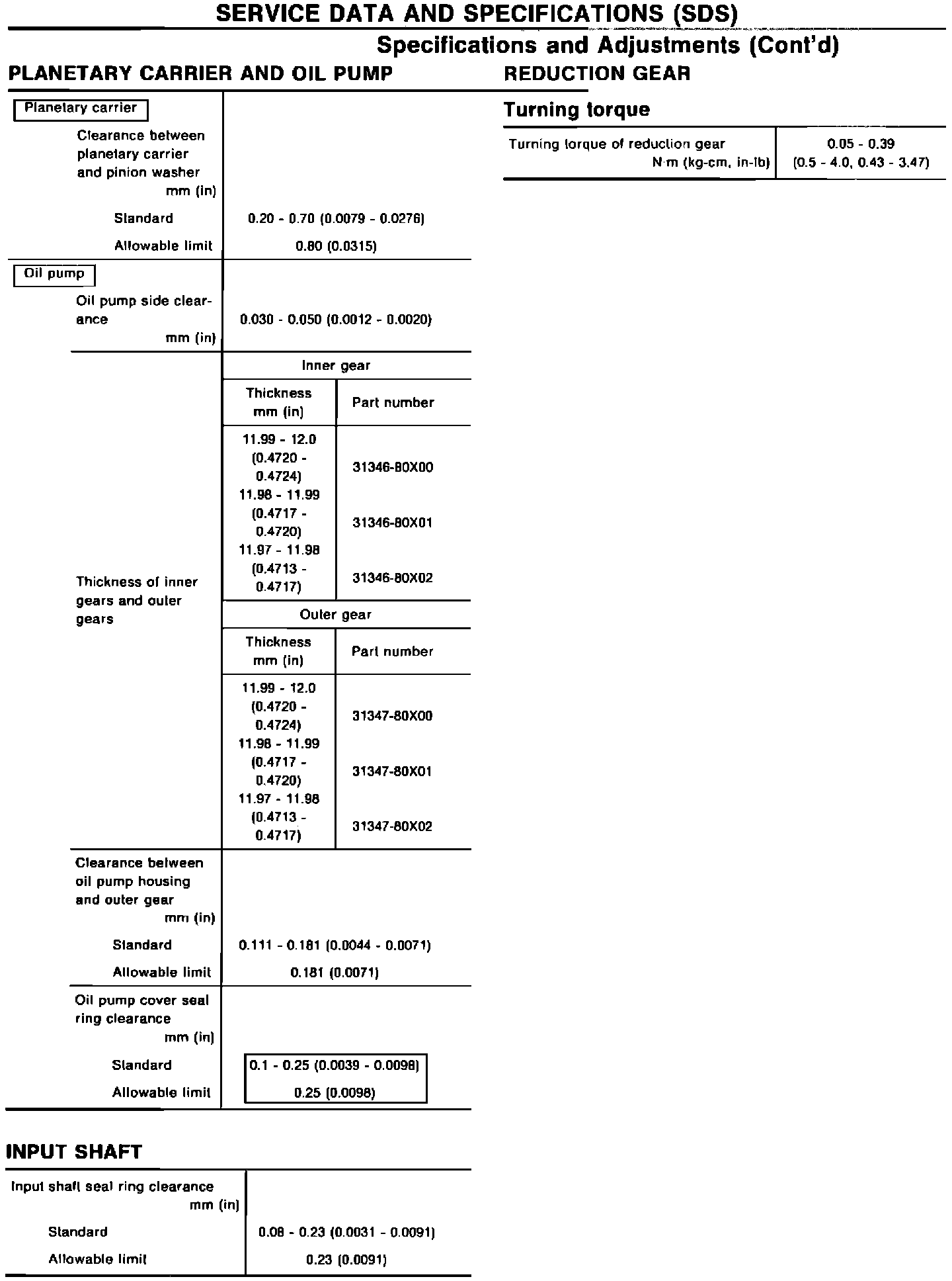 AT-230 Oil pump cover seal ring clearance