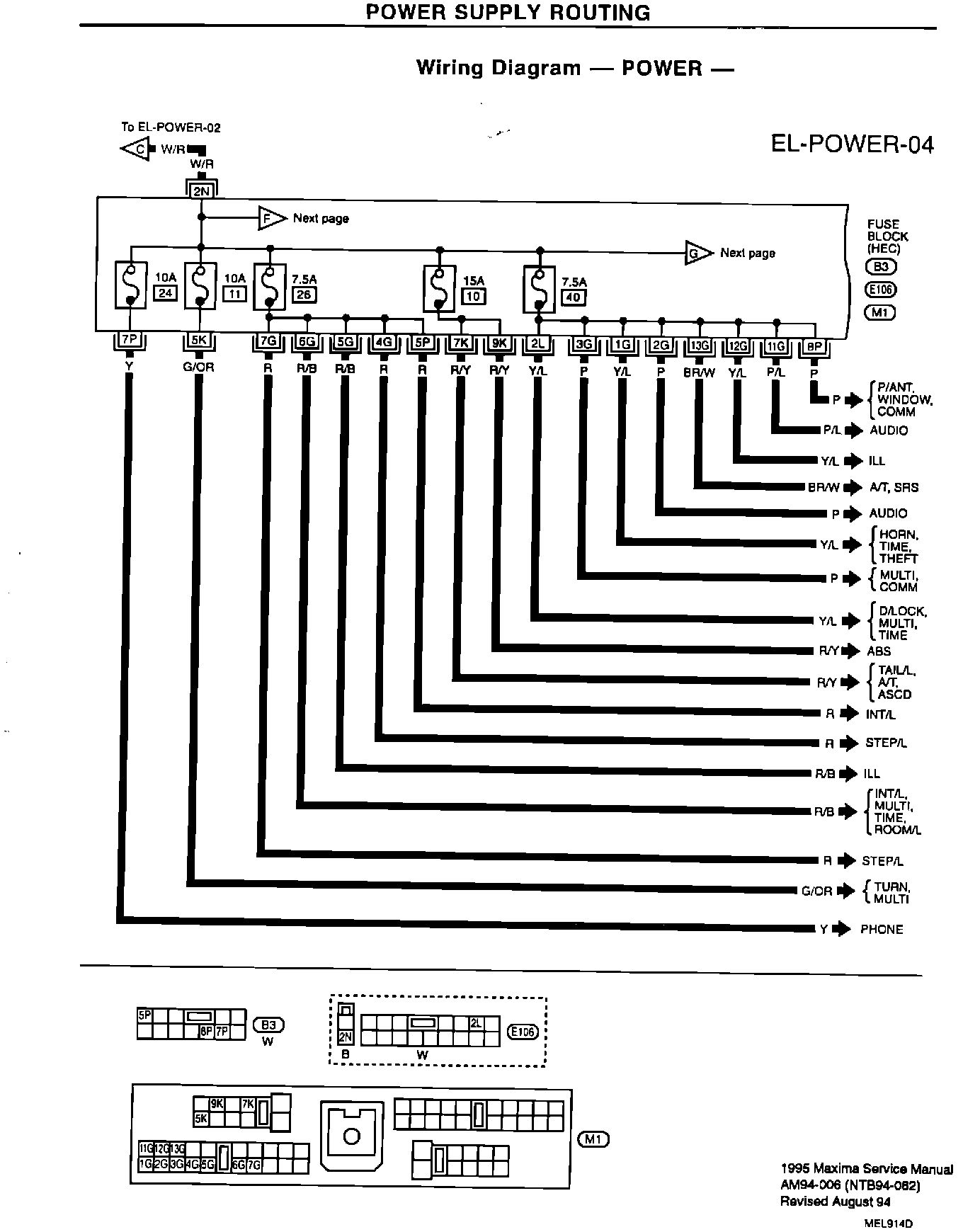 The illustrations for the Automatic Transmission and Electrical sections of the 1995 Maxima Service Manual contains the following corrections for the Oil pump cover seal ring clearance of the RE4F04A transmission and wiring diagrams concerning the addition of a phone. Please paste the amended pages in your copies of the 1995 Maxima Service Manual.