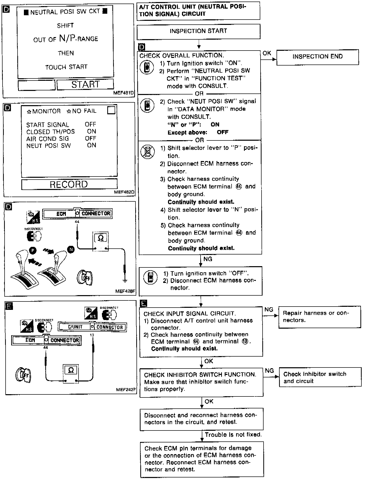 A/T Control Unit (Neutral Position Signal) Circuit Diagnostic Chart: