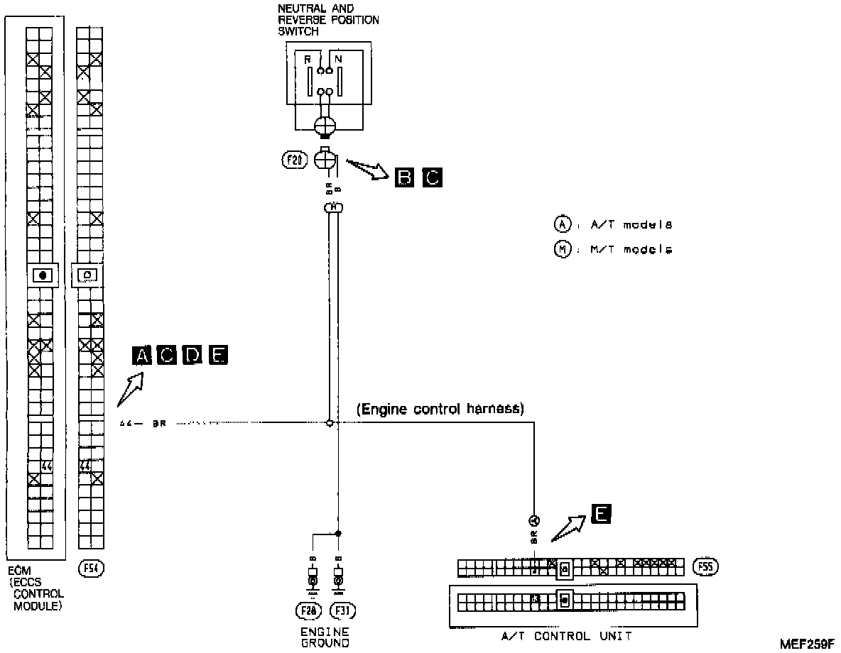 Neutral Position Switch/AT Control Unit (Neutral Position Signal) Circuit: