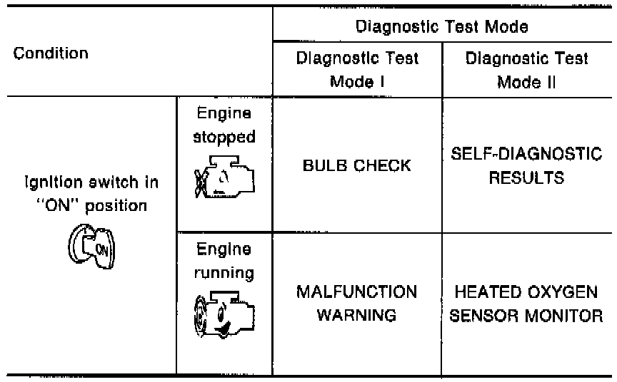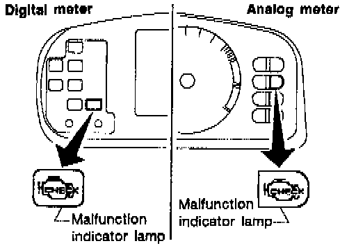 A malfunction indicator lamp has been adopted on all models. This light blinks simultaneously with the RED LED on the Engine Control Module (ECM).